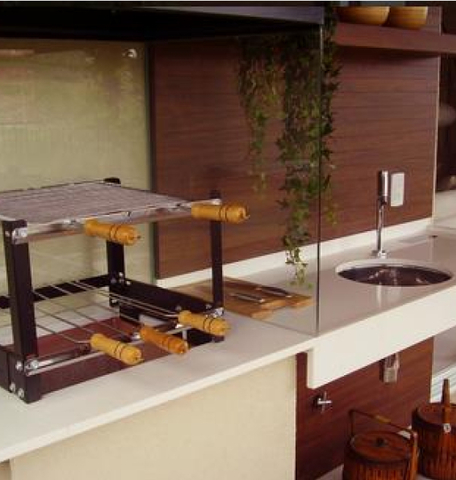 A única coisa que não abrimos mão foi da churrasqueira a carvão,