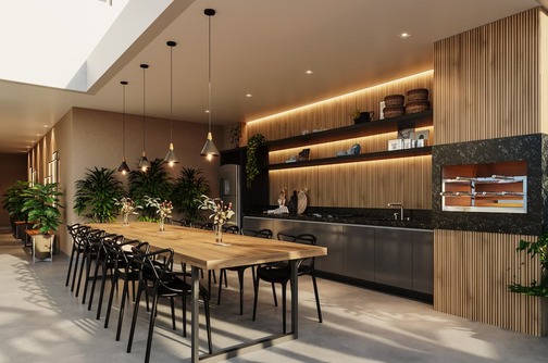Todos os detalhes foram pensados para promover mais qualidade de vida e diversão para você e sua família! Salão de festas Churrasqueira Piscina adulto e infantil Espaço Kids Área Gourmet Academia Varanda de jogos Playground Lobby mobiliado e decorado Co-Working